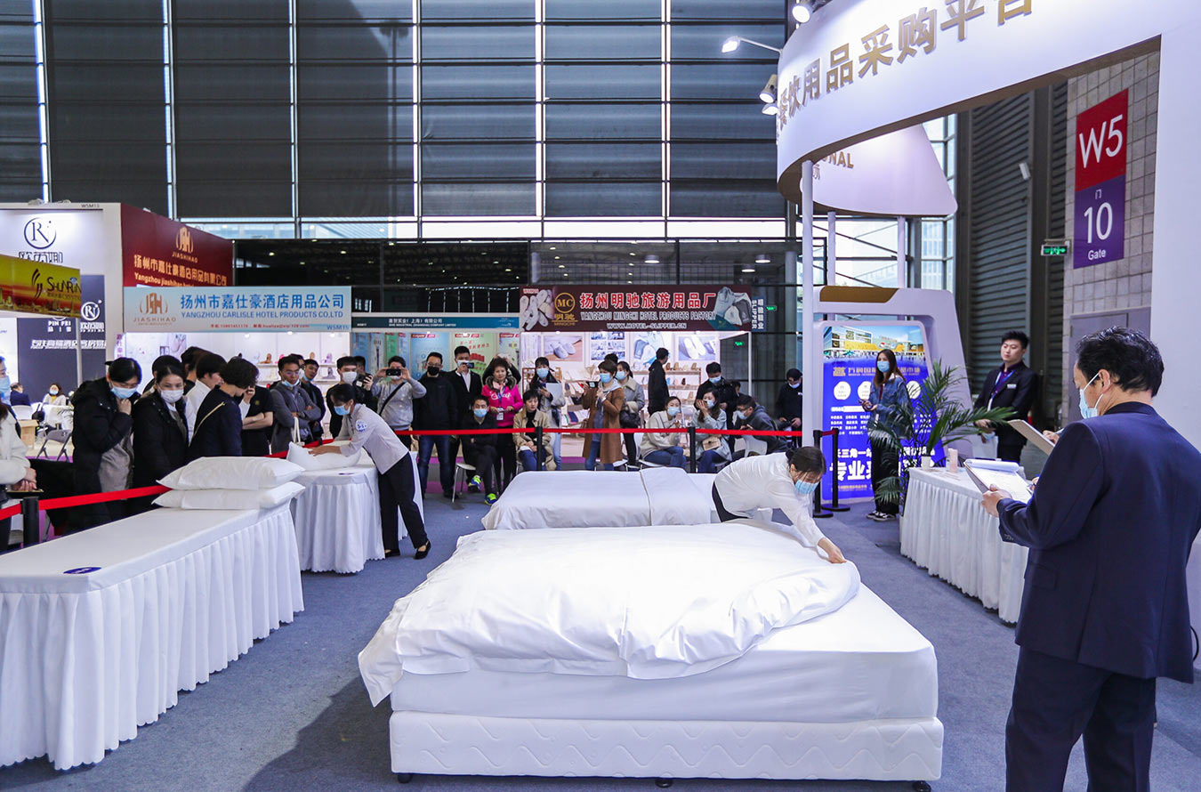 Shanghai International Hospitality Design & Supplies Expo – Hotel-Housekeeping-Wettbewerb – Shanghai International Hospitality Design & Supplies Expo. Der Wettbewerb richtet sich an Hotel-Haushälterinnen, die im Bereich der Herstellung von Betten, bestehend aus Bettlaken, Steppdecken und Kissen, miteinander konkurrieren und dabei ihre Servicekompetenz unter Beweis stellen möchten. Es hilft Hotelmitarbeitern beim Austausch von Housekeeping-Fähigkeiten und treibt die Entwicklung des Marktes für Hotelbedarf voran.
